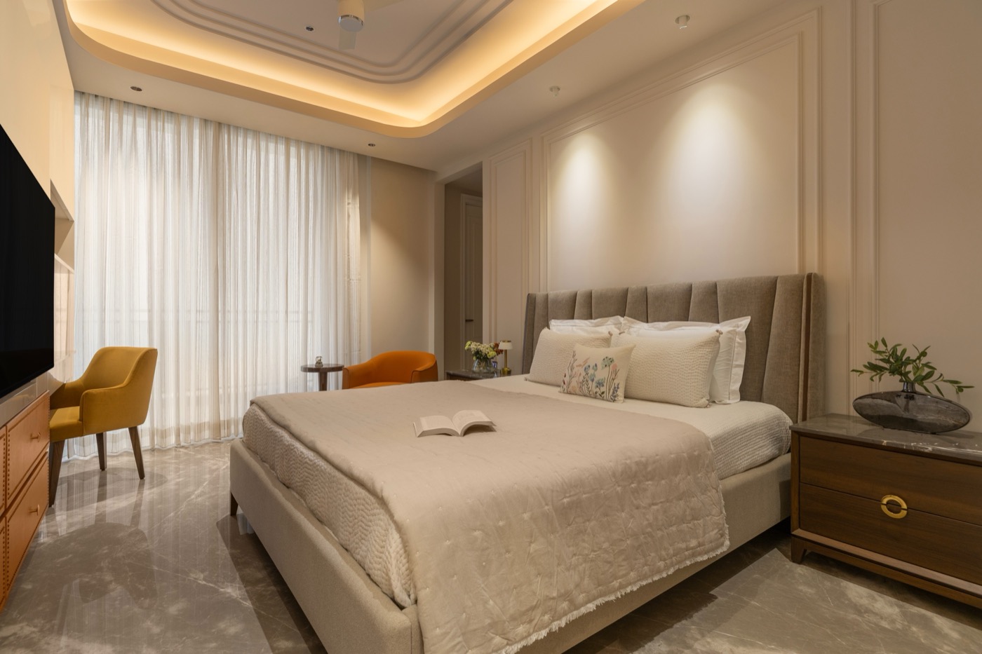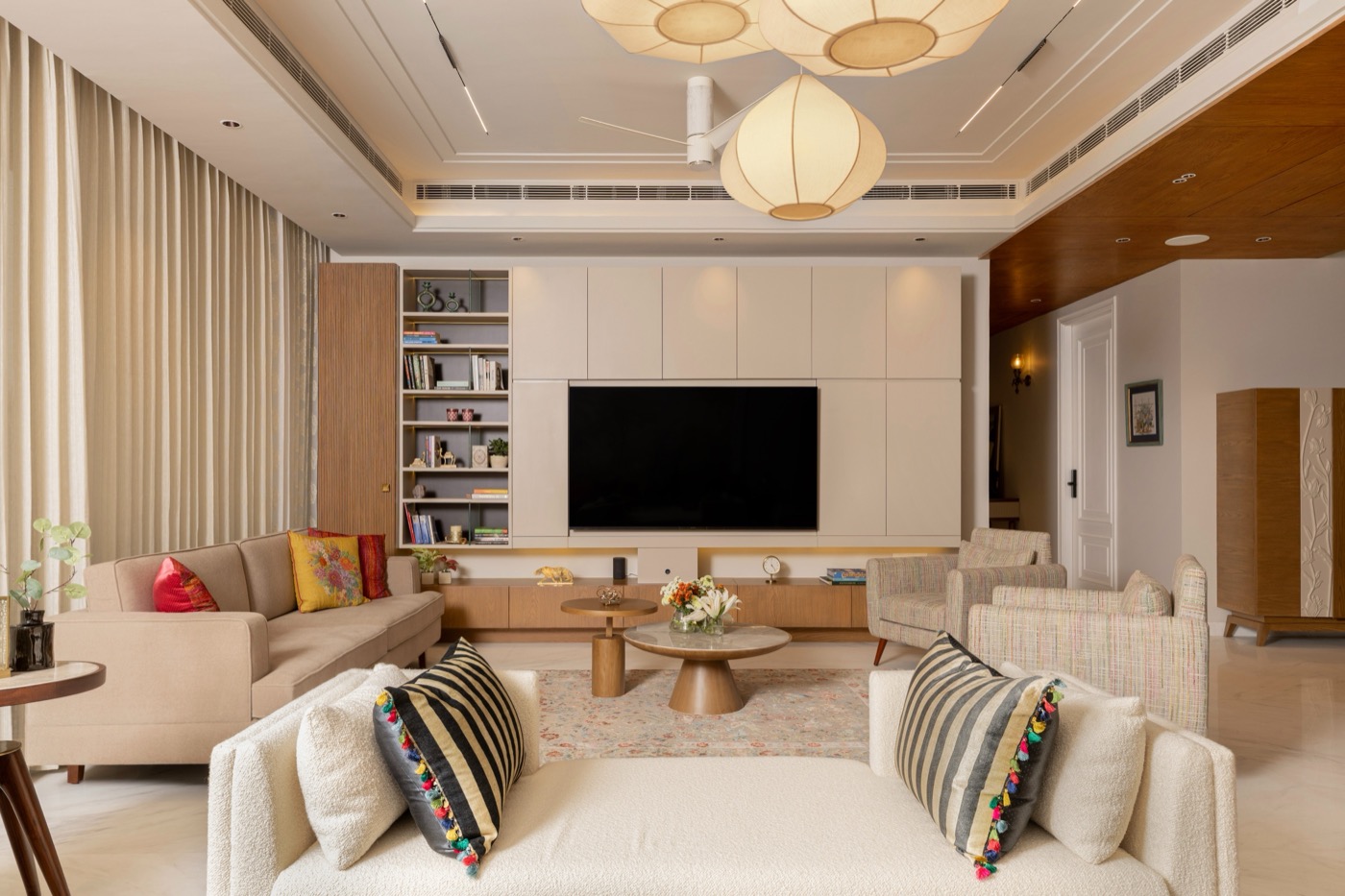 As their dedicated interior designer, we handled every detail—from bespoke ceiling designs and intricate wall finishes to custom furniture craftsmanship, premium paints, and flawless execution.